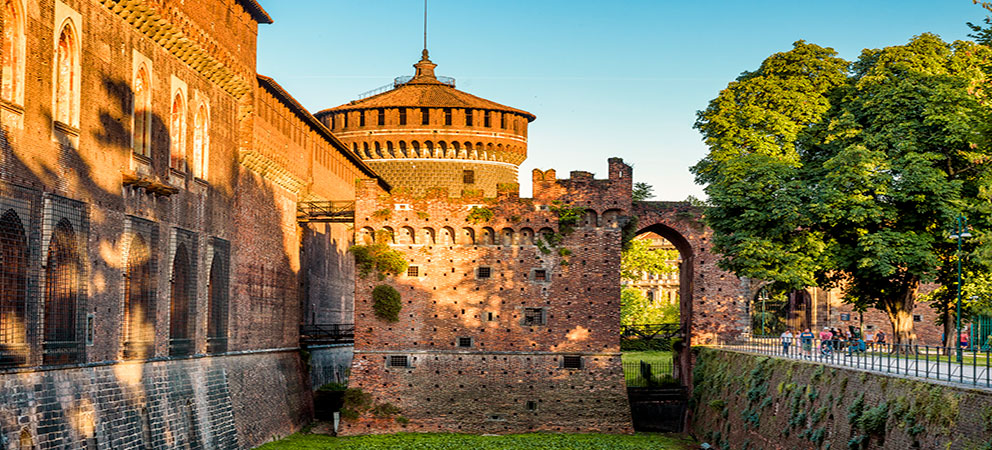 La construcción del Castillo Sforzesco data del siglo XIV, cuando se creó como fortaleza en 1368 por orden de Galeazzo II Visconti, señor de Milán. Sin embargo, durante la revolución y fundación de la República Ambrosiana, el castillo fue destruido.